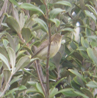 Peninnis Head was my first bet, after a little advice from some of the local birders. Still tired from yesterday, I stood blankly watching a hedge where I'd just seen a warbler fly in. It emerged after about a 10-15 minutes wait. Despite not showing well, I suddenly realised I was confronted with a Melodious or Icterine Warbler! After some quick digi-scope shots, it was soon gone, never to be seen again. Although the ID still remains unconfirmed, it is most likely to be a Melodious Warbler. Thanks to all those who helped try and ID it on birdforum and local birders on Scilly (all the same, still my first self-found Scilly scarcity!).